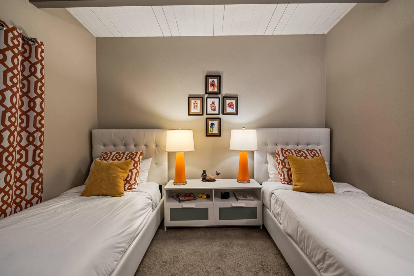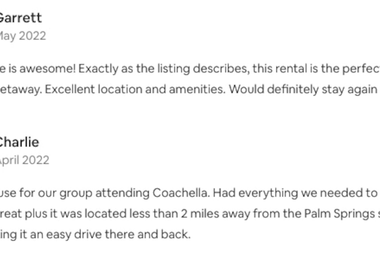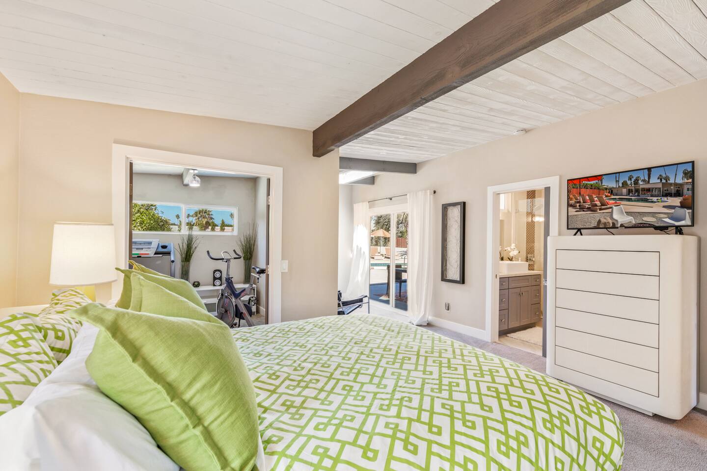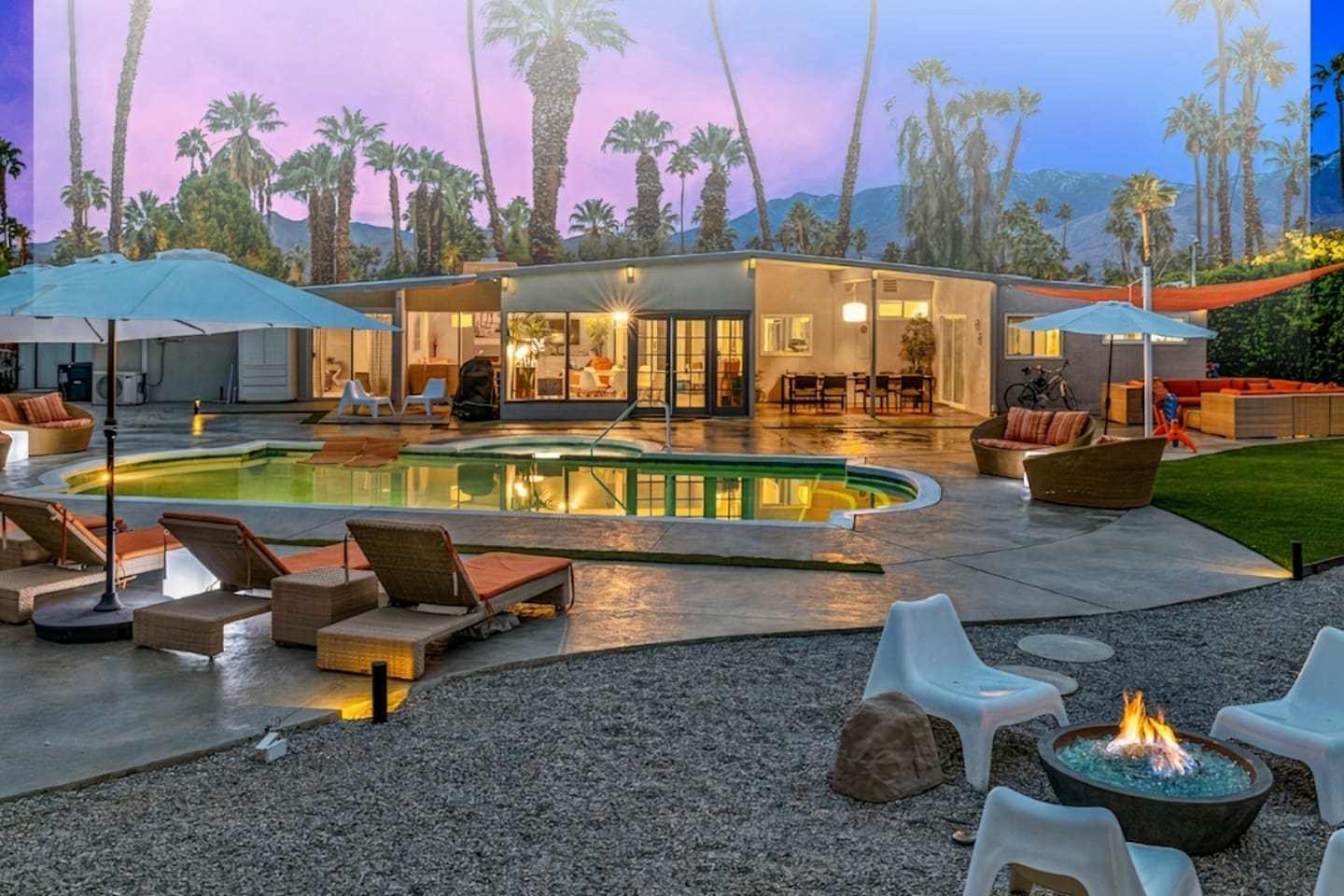 Space: ⭐️⭐️HIGHLIGHTS ⭐️⭐️ * 10 people = 8 adults & 2 children under 12 ✹ 4 bedrooms; 2 California kings, 1 queen, 2 twins, 1 full size futon ✹ 2 full bathrooms w/ complimentary toiletries ✹ Family-friendly ✹ Full kitchen; stainless steel appliances ✹ Open-concept layout ✹ Stylish living area ✹ Workout area w/ a treadmill, water rower, and adjustable weights ✹ Free high-speed wifi + Smart TVs ✹ Central A/C + heating ✹ Game console ✹ Washer + dryer ✹ Dog-friendly ✹ Stunning mountain views ✹ Private backyard w/ shaded seating areas ✹ Large heated saltwater pool + hot tub ✹ Fire pit ✹ BBQ + outdoor dining table ✹ Outdoor games ✹ 6 beach cruisers w/ locks and helmets ✹ Home Gym w/ Peloton Bike, rower , weights and more ✹ Free parking ✹ Prime location; short drive to airport, downtown, attractions, groceries + restaurants ✹ Concierge service; car rentals, chef recommendations, airport pickups + more Eager to Read More? Here Are A Few Kind Words From Our Previous Guests: “We really enjoyed our stay. So many amenities were available in the home, a thorough guide was provided to answer any questions, check in went smoothly. Would definitely recommend and will try to return. Pool and spa were GREAT!” - K “Look no further for your memorable Palm Springs getaway. The backyard is like having your own private resort! Location to all the hotspots makes this place an easy landing spot for coming and going. The owners and management company was very friendly and happy to help with making your stay easy and comfortable. The home is well equipped and has a beautifully organized manual to help answer any questions you may have with the home. Would highly recommend!❤️” - Christina “I have nothing but good things to say about this place! It was perfect for my 30th birthday. Located 3 minutes from the airport, it is cozy, clean, and was fully stocked with anything we could’ve needed. The saltwater pool is AMAZING and we felt very at home all weekend. Would totally stay again!” - Jasmine ★★ BEDROOMS ★★ Built in 1960 by the Alexander Building Company and designed by architect William Krisel, Sunmor Escape has been renovated with modern conveniences while retaining its original charm. This charm is fully on display in each of the four spacious bedrooms. Each with a different color scheme and lovely design, ensuring a unique place to unwind. The plush mattresses are fitted with Egyptian cotton sheets and the windows feature room-darkening shades so you can enjoy a restful sleep. ✹ Primary bedroom: California king bed, Smart TV, workout room, direct access to the backyard, ensuite bathroom ✹ Second Primary Bedroom: California king bed, futon, Smart TV, direct access to the backyard, work desk ✹ Third Guest Room: Queen-sized bed, work desk ✹ Fourth Guestroom: Two twin beds can be converted to Cali -King with notice ★★ BATHROOMS ★★ Freshen up in one of the 2 full bathrooms. Each elegant bathroom is sparkling clean and offers an inviting space in which to freshen up. ✹ Bathroom 1: Ensuite to primary bedroom, walk-in shower, single vanity ✹ Bathroom 2: Walk-in shower, single vanity ✔ Fresh towels ✔ Shampoo, conditioner, and body wash ✔ Hair dryer ✔ Washer and dryer ✔ Iron ★★ KITCHEN & DINING ★★ The state-of-the-art kitchen is the perfect place to whip up delicious meals for the whole group. You’ll find everything you’ll need during your stay, including high-end appliances, plenty of counter space, and ample cookware and dishware. You’ll even find a Margaritaville Concoction Maker so you can easily blend a margarita to enjoy outside on a hot summer day. The open-concept layout makes it easy to socialize while preparing meals. ✔ Stainless steel appliances ✔ Full-size fridge and freezer ✔ Dishwasher, stove, oven, and microwave ✔ Keurig coffee maker, kettle, blender, air fryer ✔ Waffle maker, air fryer, popcorn machine, Margaritaville Frozen Concoction Maker ✔ Kitchen island with seating for 2 ✔ 8-foot mid-century tulip dining table for 8 ✔ Cocktail bar ★★ LIVING ROOM ★★ Relax in the spacious living area. You’ll find a large sectional sofa for 8 and two reclining chairs, perfect for accommodating large groups. Sit back and watch your favorite show after a wonderful day of golfing or lounging by the pool. ✔ 55” Flat-screen Smart TV with Amazon Prime Video, Disney+, HBO Max, Hulu, Netflix, Roku, a DVD player, and standard cable ✔ Free wifi (30Mbps) ✔ Game console ✔ Central A/C ✔ Board games ★★ OUTDOOR SPACE ★★ Step outside into the private backyard and enjoy some fresh air and lovely mountain views. Take a dip in the saltwater pool or soak in the spa (heated free of charge). There are plenty of pool floaties, towels, and lounging areas. Enjoy playing outdoor games, grill up a meal on the BBQ, and enjoy an al fresco meal at the outdoor dining table (made easier thanks to a pass-through window from the kitchen). ✔ 500-square-foot saltwater pool and hot tub (free heating for spa) ✔ BBQ and outdoor seating ✔ Outdoor games; Connect Four + Giant Corn hole ✔ Sun loungers ✔ Hammock ✔ Firepit ✔ 2 beach cruisers w/ helmets + lock ★★ ACTIVITIES/ATTRACTIONS ★★ This charming home is ideally located in a quiet neighborhood near many fun activities. Whether you’re traveling with friends or family, you’ll have endless opportunities at your fingertips. Check out some of these fun things to do: ✔ Palm Springs Aerial Tramway: Elevate your family's vacation at the Palm Springs Aerial Tramway, providing breathtaking views as you ascend to the mountain station, where hiking trails and panoramic vistas await. ✔ Palm Springs Art Museum: Unite with friends for a cultural experience at the Palm Springs Art Museum, showcasing a diverse collection of contemporary and classic art, perfect for a group outing of artistic exploration. ✔ Palm Springs