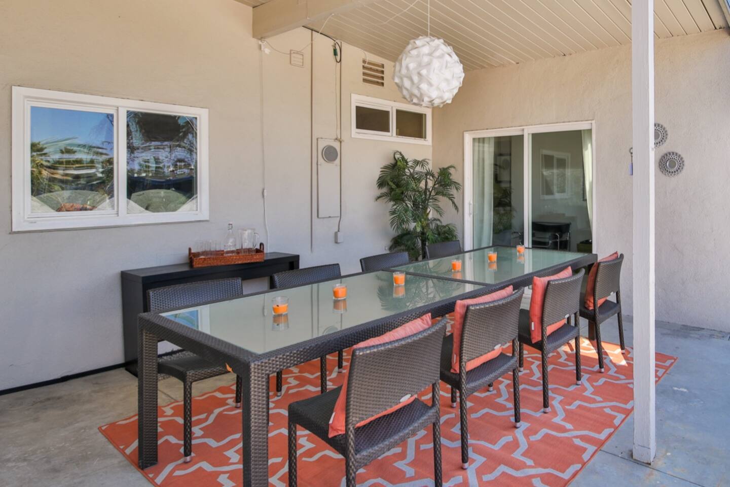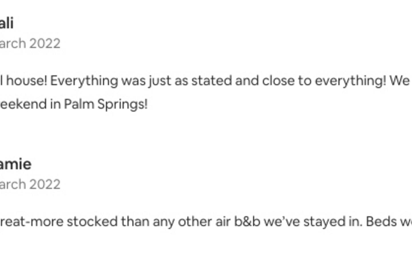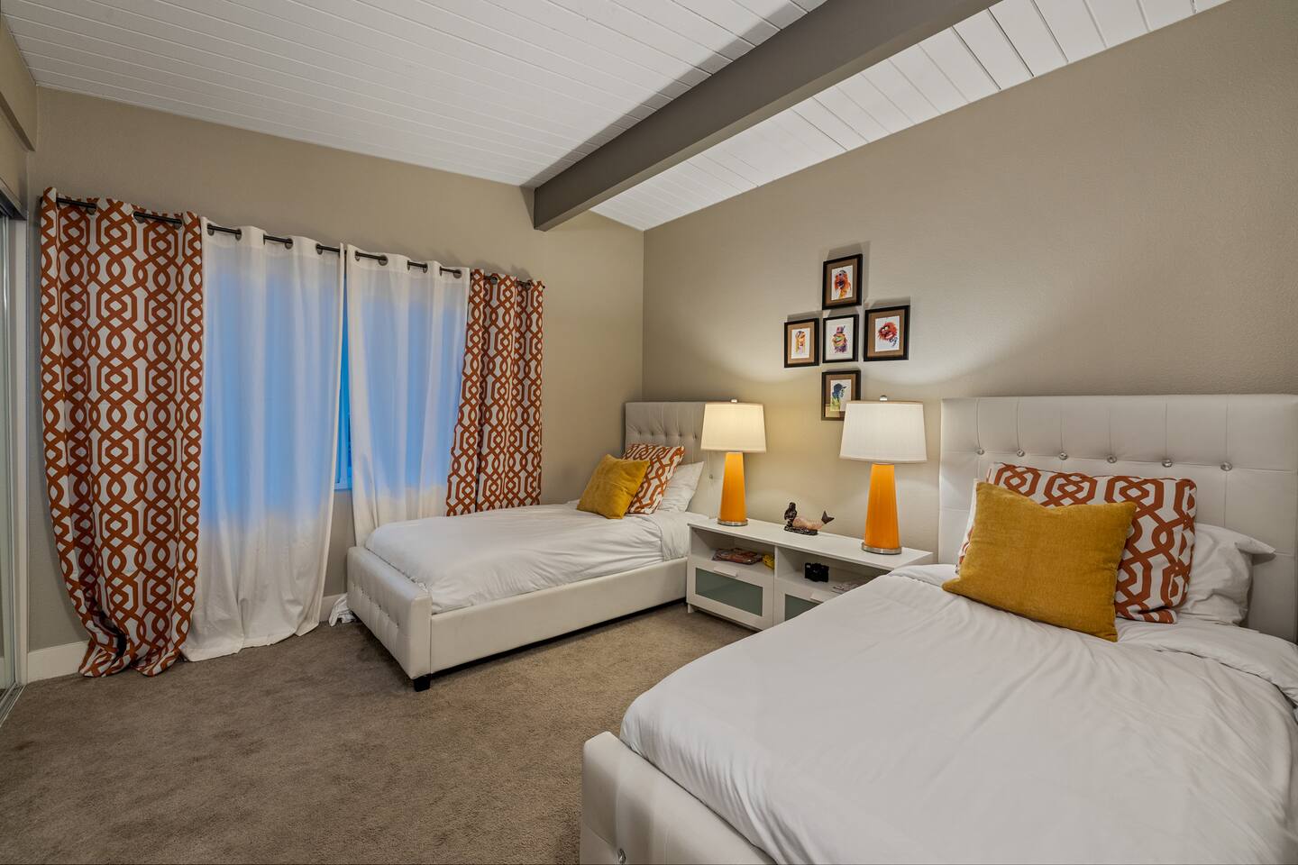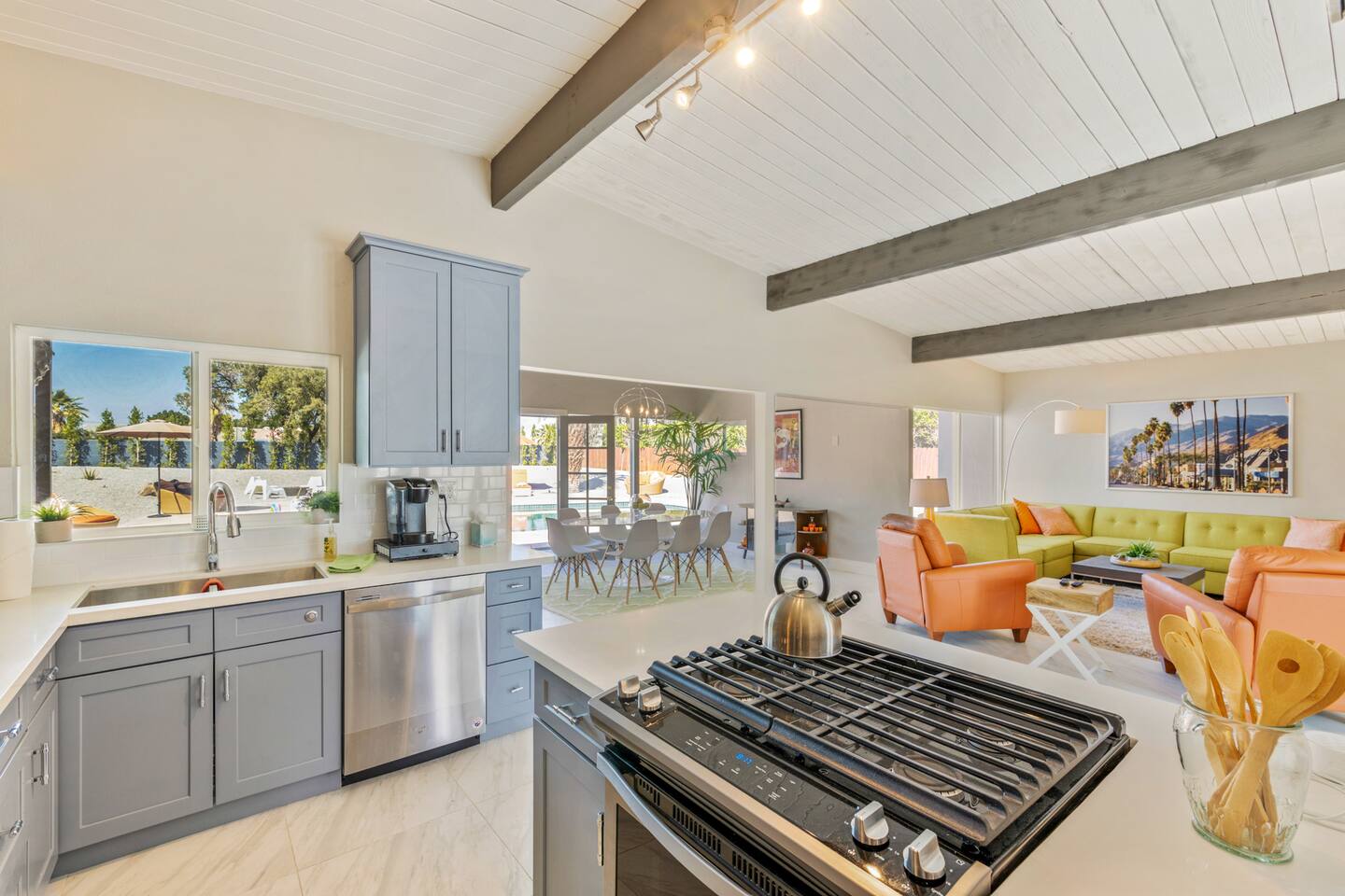 Space: ⭐️⭐️HIGHLIGHTS ⭐️⭐️ * 10 people = 8 adults & 2 children under 12 ✹ 4 bedrooms; 2 California kings, 1 queen, 2 twins, 1 full size futon ✹ 2 full bathrooms w/ complimentary toiletries ✹ Family-friendly ✹ Full kitchen; stainless steel appliances ✹ Open-concept layout ✹ Stylish living area ✹ Workout area w/ a treadmill, water rower, and adjustable weights ✹ Free high-speed wifi + Smart TVs ✹ Central A/C + heating ✹ Game console ✹ Washer + dryer ✹ Dog-friendly ✹ Stunning mountain views ✹ Private backyard w/ shaded seating areas ✹ Large heated saltwater pool + hot tub ✹ Fire pit ✹ BBQ + outdoor dining table ✹ Outdoor games ✹ 6 beach cruisers w/ locks and helmets ✹ Home Gym w/ Peloton Bike, rower , weights and more ✹ Free parking ✹ Prime location; short drive to airport, downtown, attractions, groceries + restaurants ✹ Concierge service; car rentals, chef recommendations, airport pickups + more Eager to Read More? Here Are A Few Kind Words From Our Previous Guests: “We really enjoyed our stay. So many amenities were available in the home, a thorough guide was provided to answer any questions, check in went smoothly. Would definitely recommend and will try to return. Pool and spa were GREAT!” - K “Look no further for your memorable Palm Springs getaway. The backyard is like having your own private resort! Location to all the hotspots makes this place an easy landing spot for coming and going. The owners and management company was very friendly and happy to help with making your stay easy and comfortable. The home is well equipped and has a beautifully organized manual to help answer any questions you may have with the home. Would highly recommend!❤️” - Christina “I have nothing but good things to say about this place! It was perfect for my 30th birthday. Located 3 minutes from the airport, it is cozy, clean, and was fully stocked with anything we could’ve needed. The saltwater pool is AMAZING and we felt very at home all weekend. Would totally stay again!” - Jasmine ★★ BEDROOMS ★★ Built in 1960 by the Alexander Building Company and designed by architect William Krisel, Sunmor Escape has been renovated with modern conveniences while retaining its original charm. This charm is fully on display in each of the four spacious bedrooms. Each with a different color scheme and lovely design, ensuring a unique place to unwind. The plush mattresses are fitted with Egyptian cotton sheets and the windows feature room-darkening shades so you can enjoy a restful sleep. ✹ Primary bedroom: California king bed, Smart TV, workout room, direct access to the backyard, ensuite bathroom ✹ Second Primary Bedroom: California king bed, futon, Smart TV, direct access to the backyard, work desk ✹ Third Guest Room: Queen-sized bed, work desk ✹ Fourth Guestroom: Two twin beds can be converted to Cali -King with notice ★★ BATHROOMS ★★ Freshen up in one of the 2 full bathrooms. Each elegant bathroom is sparkling clean and offers an inviting space in which to freshen up. ✹ Bathroom 1: Ensuite to primary bedroom, walk-in shower, single vanity ✹ Bathroom 2: Walk-in shower, single vanity ✔ Fresh towels ✔ Shampoo, conditioner, and body wash ✔ Hair dryer ✔ Washer and dryer ✔ Iron ★★ KITCHEN & DINING ★★ The state-of-the-art kitchen is the perfect place to whip up delicious meals for the whole group. You’ll find everything you’ll need during your stay, including high-end appliances, plenty of counter space, and ample cookware and dishware. You’ll even find a Margaritaville Concoction Maker so you can easily blend a margarita to enjoy outside on a hot summer day. The open-concept layout makes it easy to socialize while preparing meals. ✔ Stainless steel appliances ✔ Full-size fridge and freezer ✔ Dishwasher, stove, oven, and microwave ✔ Keurig coffee maker, kettle, blender, air fryer ✔ Waffle maker, air fryer, popcorn machine, Margaritaville Frozen Concoction Maker ✔ Kitchen island with seating for 2 ✔ 8-foot mid-century tulip dining table for 8 ✔ Cocktail bar ★★ LIVING ROOM ★★ Relax in the spacious living area. You’ll find a large sectional sofa for 8 and two reclining chairs, perfect for accommodating large groups. Sit back and watch your favorite show after a wonderful day of golfing or lounging by the pool. ✔ 55” Flat-screen Smart TV with Amazon Prime Video, Disney+, HBO Max, Hulu, Netflix, Roku, a DVD player, and standard cable ✔ Free wifi (30Mbps) ✔ Game console ✔ Central A/C ✔ Board games ★★ OUTDOOR SPACE ★★ Step outside into the private backyard and enjoy some fresh air and lovely mountain views. Take a dip in the saltwater pool or soak in the spa (heated free of charge). There are plenty of pool floaties, towels, and lounging areas. Enjoy playing outdoor games, grill up a meal on the BBQ, and enjoy an al fresco meal at the outdoor dining table (made easier thanks to a pass-through window from the kitchen). ✔ 500-square-foot saltwater pool and hot tub (free heating for spa) ✔ BBQ and outdoor seating ✔ Outdoor games; Connect Four + Giant Corn hole ✔ Sun loungers ✔ Hammock ✔ Firepit ✔ 2 beach cruisers w/ helmets + lock ★★ ACTIVITIES/ATTRACTIONS ★★ This charming home is ideally located in a quiet neighborhood near many fun activities. Whether you’re traveling with friends or family, you’ll have endless opportunities at your fingertips. Check out some of these fun things to do: ✔ Palm Springs Aerial Tramway: Elevate your family's vacation at the Palm Springs Aerial Tramway, providing breathtaking views as you ascend to the mountain station, where hiking trails and panoramic vistas await. ✔ Palm Springs Art Museum: Unite with friends for a cultural experience at the Palm Springs Art Museum, showcasing a diverse collection of contemporary and classic art, perfect for a group outing of artistic exploration. ✔ Palm Springs