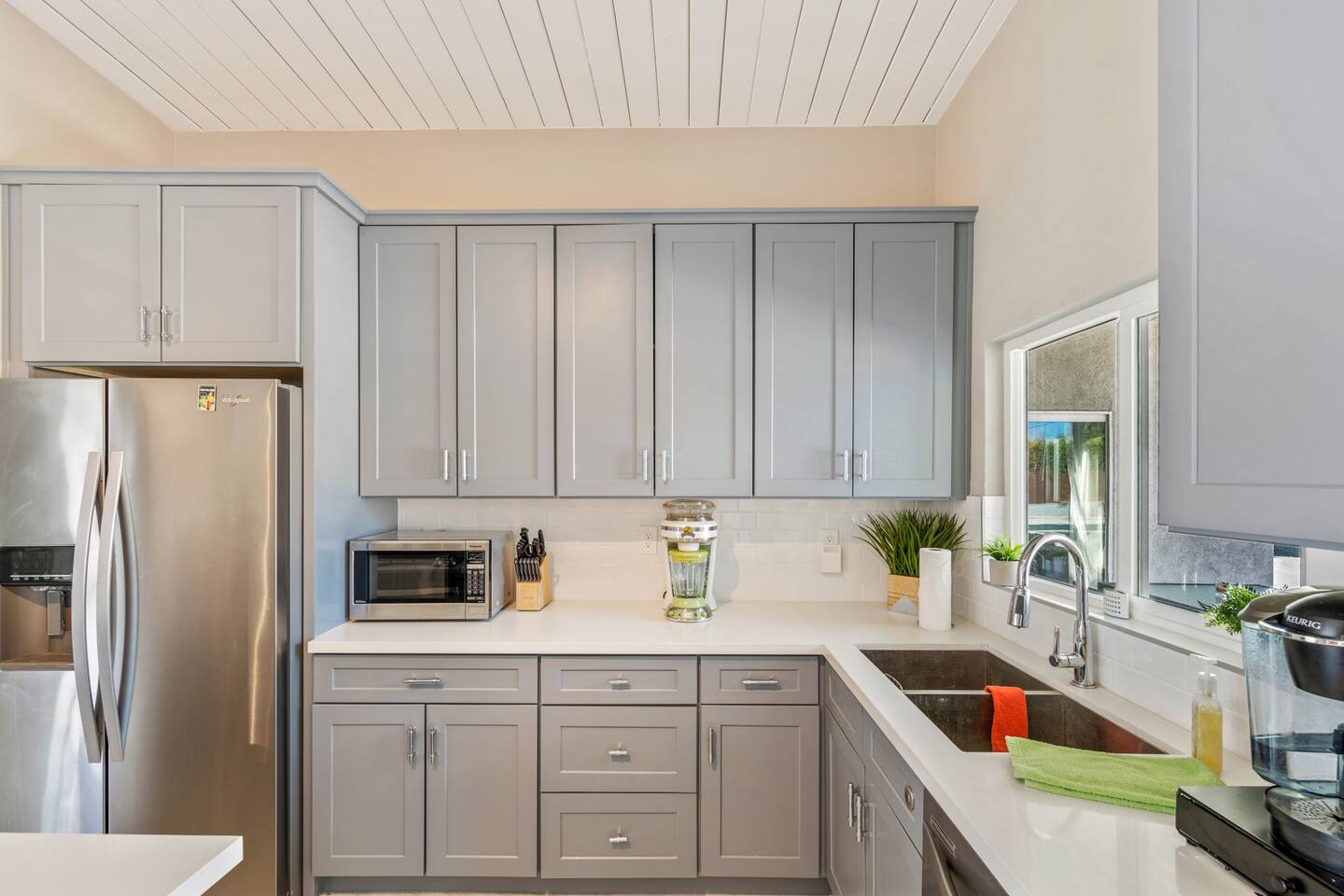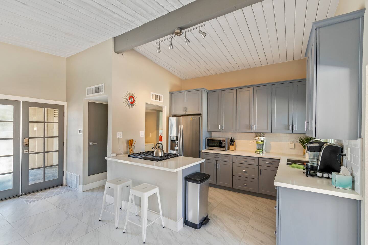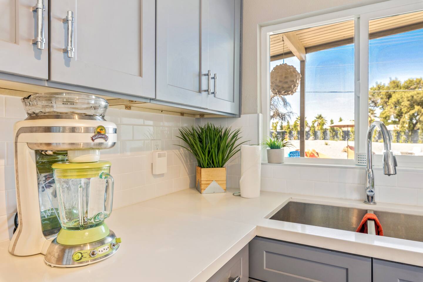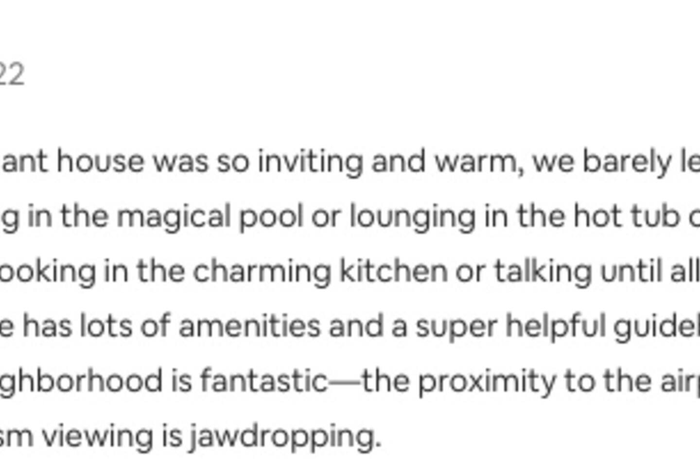 Space: ⭐️⭐️HIGHLIGHTS ⭐️⭐️ * 10 people = 8 adults & 2 children under 12 ✹ 4 bedrooms; 2 California kings, 1 queen, 2 twins, 1 full size futon ✹ 2 full bathrooms w/ complimentary toiletries ✹ Family-friendly ✹ Full kitchen; stainless steel appliances ✹ Open-concept layout ✹ Stylish living area ✹ Workout area w/ a treadmill, water rower, and adjustable weights ✹ Free high-speed wifi + Smart TVs ✹ Central A/C + heating ✹ Game console ✹ Washer + dryer ✹ Dog-friendly ✹ Stunning mountain views ✹ Private backyard w/ shaded seating areas ✹ Large heated saltwater pool + hot tub ✹ Fire pit ✹ BBQ + outdoor dining table ✹ Outdoor games ✹ 6 beach cruisers w/ locks and helmets ✹ Home Gym w/ Peloton Bike, rower , weights and more ✹ Free parking ✹ Prime location; short drive to airport, downtown, attractions, groceries + restaurants ✹ Concierge service; car rentals, chef recommendations, airport pickups + more Eager to Read More? Here Are A Few Kind Words From Our Previous Guests: “We really enjoyed our stay. So many amenities were available in the home, a thorough guide was provided to answer any questions, check in went smoothly. Would definitely recommend and will try to return. Pool and spa were GREAT!” - K “Look no further for your memorable Palm Springs getaway. The backyard is like having your own private resort! Location to all the hotspots makes this place an easy landing spot for coming and going. The owners and management company was very friendly and happy to help with making your stay easy and comfortable. The home is well equipped and has a beautifully organized manual to help answer any questions you may have with the home. Would highly recommend!❤️” - Christina “I have nothing but good things to say about this place! It was perfect for my 30th birthday. Located 3 minutes from the airport, it is cozy, clean, and was fully stocked with anything we could’ve needed. The saltwater pool is AMAZING and we felt very at home all weekend. Would totally stay again!” - Jasmine ★★ BEDROOMS ★★ Built in 1960 by the Alexander Building Company and designed by architect William Krisel, Sunmor Escape has been renovated with modern conveniences while retaining its original charm. This charm is fully on display in each of the four spacious bedrooms. Each with a different color scheme and lovely design, ensuring a unique place to unwind. The plush mattresses are fitted with Egyptian cotton sheets and the windows feature room-darkening shades so you can enjoy a restful sleep. ✹ Primary bedroom: California king bed, Smart TV, workout room, direct access to the backyard, ensuite bathroom ✹ Second Primary Bedroom: California king bed, futon, Smart TV, direct access to the backyard, work desk ✹ Third Guest Room: Queen-sized bed, work desk ✹ Fourth Guestroom: Two twin beds can be converted to Cali -King with notice ★★ BATHROOMS ★★ Freshen up in one of the 2 full bathrooms. Each elegant bathroom is sparkling clean and offers an inviting space in which to freshen up. ✹ Bathroom 1: Ensuite to primary bedroom, walk-in shower, single vanity ✹ Bathroom 2: Walk-in shower, single vanity ✔ Fresh towels ✔ Shampoo, conditioner, and body wash ✔ Hair dryer ✔ Washer and dryer ✔ Iron ★★ KITCHEN & DINING ★★ The state-of-the-art kitchen is the perfect place to whip up delicious meals for the whole group. You’ll find everything you’ll need during your stay, including high-end appliances, plenty of counter space, and ample cookware and dishware. You’ll even find a Margaritaville Concoction Maker so you can easily blend a margarita to enjoy outside on a hot summer day. The open-concept layout makes it easy to socialize while preparing meals. ✔ Stainless steel appliances ✔ Full-size fridge and freezer ✔ Dishwasher, stove, oven, and microwave ✔ Keurig coffee maker, kettle, blender, air fryer ✔ Waffle maker, air fryer, popcorn machine, Margaritaville Frozen Concoction Maker ✔ Kitchen island with seating for 2 ✔ 8-foot mid-century tulip dining table for 8 ✔ Cocktail bar ★★ LIVING ROOM ★★ Relax in the spacious living area. You’ll find a large sectional sofa for 8 and two reclining chairs, perfect for accommodating large groups. Sit back and watch your favorite show after a wonderful day of golfing or lounging by the pool. ✔ 55” Flat-screen Smart TV with Amazon Prime Video, Disney+, HBO Max, Hulu, Netflix, Roku, a DVD player, and standard cable ✔ Free wifi (30Mbps) ✔ Game console ✔ Central A/C ✔ Board games ★★ OUTDOOR SPACE ★★ Step outside into the private backyard and enjoy some fresh air and lovely mountain views. Take a dip in the saltwater pool or soak in the spa (heated free of charge). There are plenty of pool floaties, towels, and lounging areas. Enjoy playing outdoor games, grill up a meal on the BBQ, and enjoy an al fresco meal at the outdoor dining table (made easier thanks to a pass-through window from the kitchen). ✔ 500-square-foot saltwater pool and hot tub (free heating for spa) ✔ BBQ and outdoor seating ✔ Outdoor games; Connect Four + Giant Corn hole ✔ Sun loungers ✔ Hammock ✔ Firepit ✔ 2 beach cruisers w/ helmets + lock ★★ ACTIVITIES/ATTRACTIONS ★★ This charming home is ideally located in a quiet neighborhood near many fun activities. Whether you’re traveling with friends or family, you’ll have endless opportunities at your fingertips. Check out some of these fun things to do: ✔ Palm Springs Aerial Tramway: Elevate your family's vacation at the Palm Springs Aerial Tramway, providing breathtaking views as you ascend to the mountain station, where hiking trails and panoramic vistas await. ✔ Palm Springs Art Museum: Unite with friends for a cultural experience at the Palm Springs Art Museum, showcasing a diverse collection of contemporary and classic art, perfect for a group outing of artistic exploration. ✔ Palm Springs