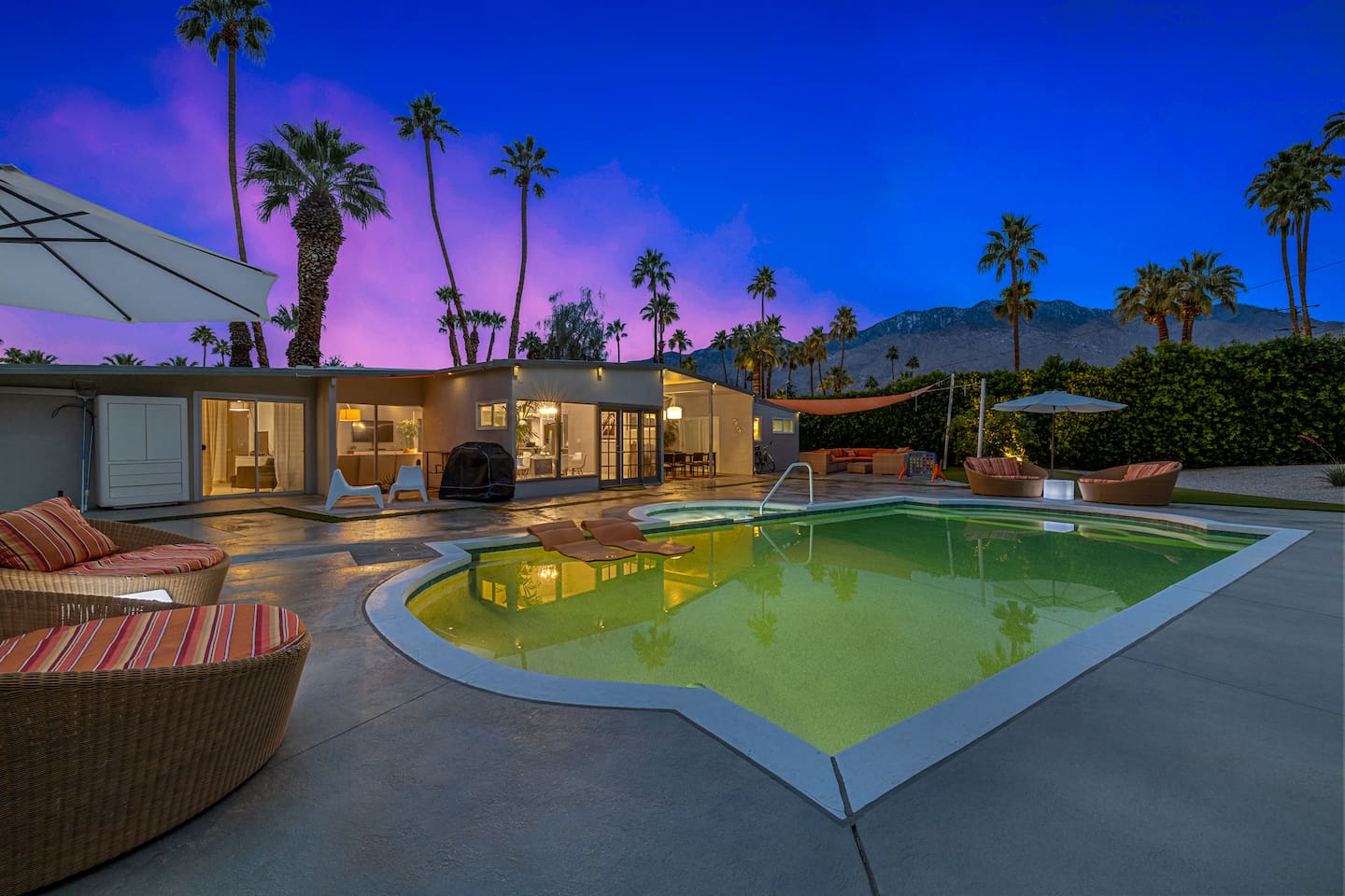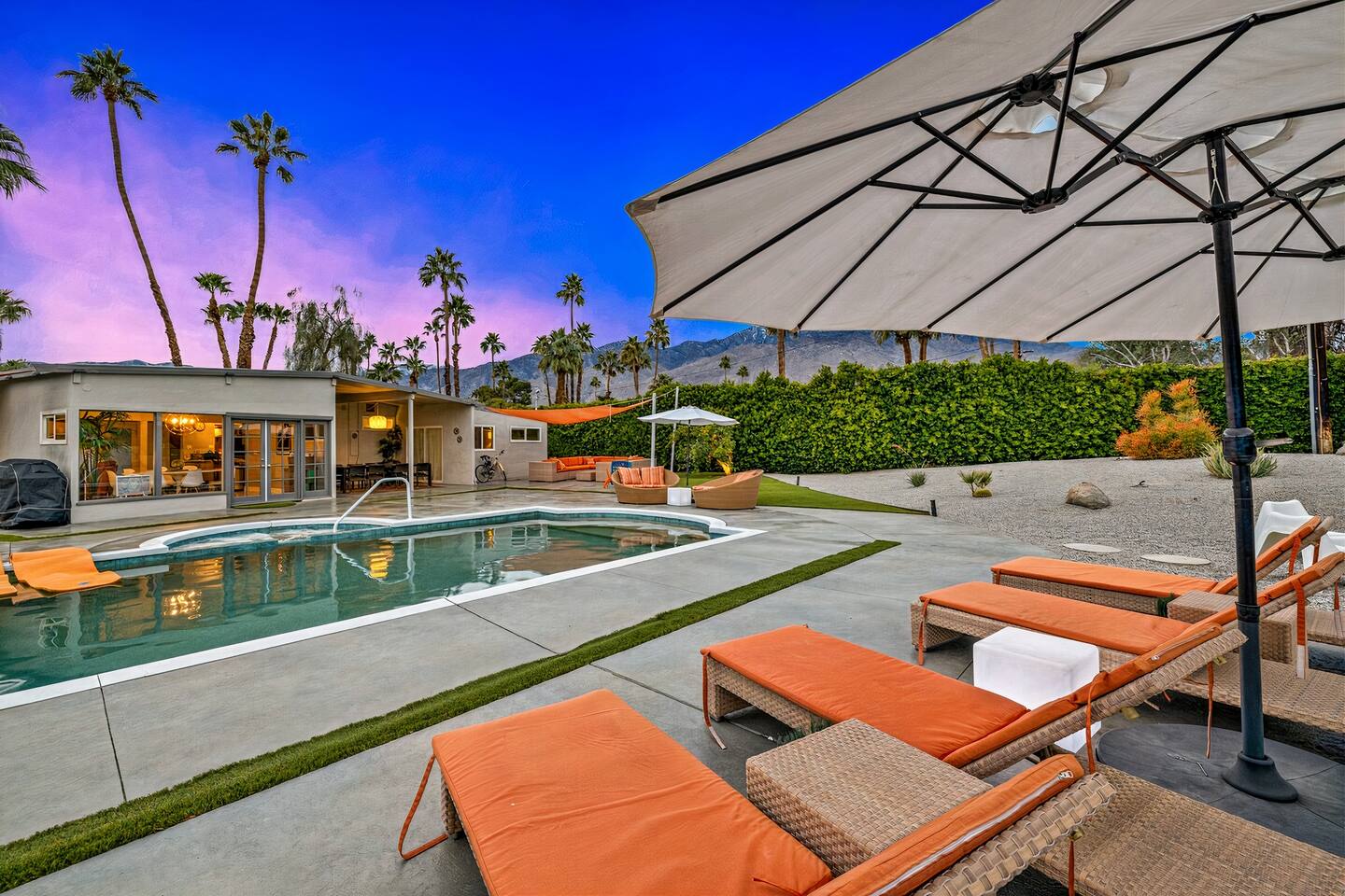 Enjoy an incredible poolside ⛱️☀️vacation at this beautifully renovated mid-century modern home. Sunmor Escape is a perfect place to enjoy the southern California sunshine, with a sprawling outdoor living space complete with a saltwater pool/ spa and stunning mountain views. The stylish interior has the highest quality furnishings and all everything you need to make it your private oasis . Pet friendly and walkable to the local dog park Create Lasting Memories In Palm Springs With Us ! 🌴